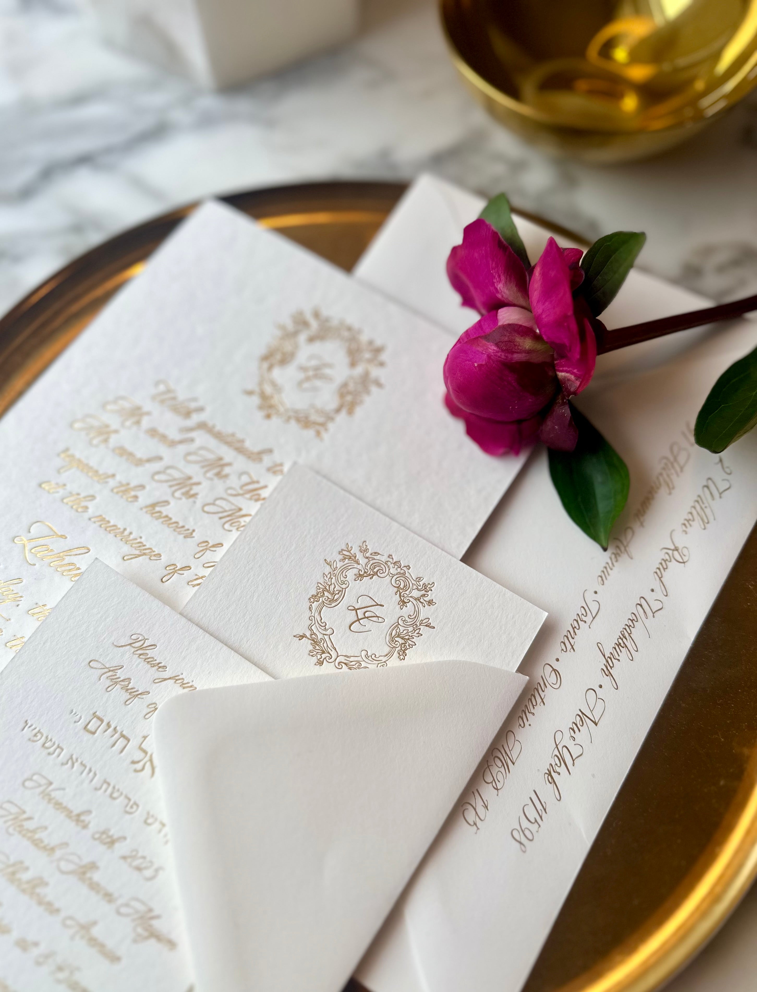 Since 2017, we’ve specialized in beautifully designed, premium-printed Jewish wedding invitations and stationery. We offer expert, personal guidance throughout the entire process, making ordering feel simple, supportive, and stress-free. We also partner with designers, planners, and brands of all sizes — delivering elevated paper goods that leave a lasting impression.